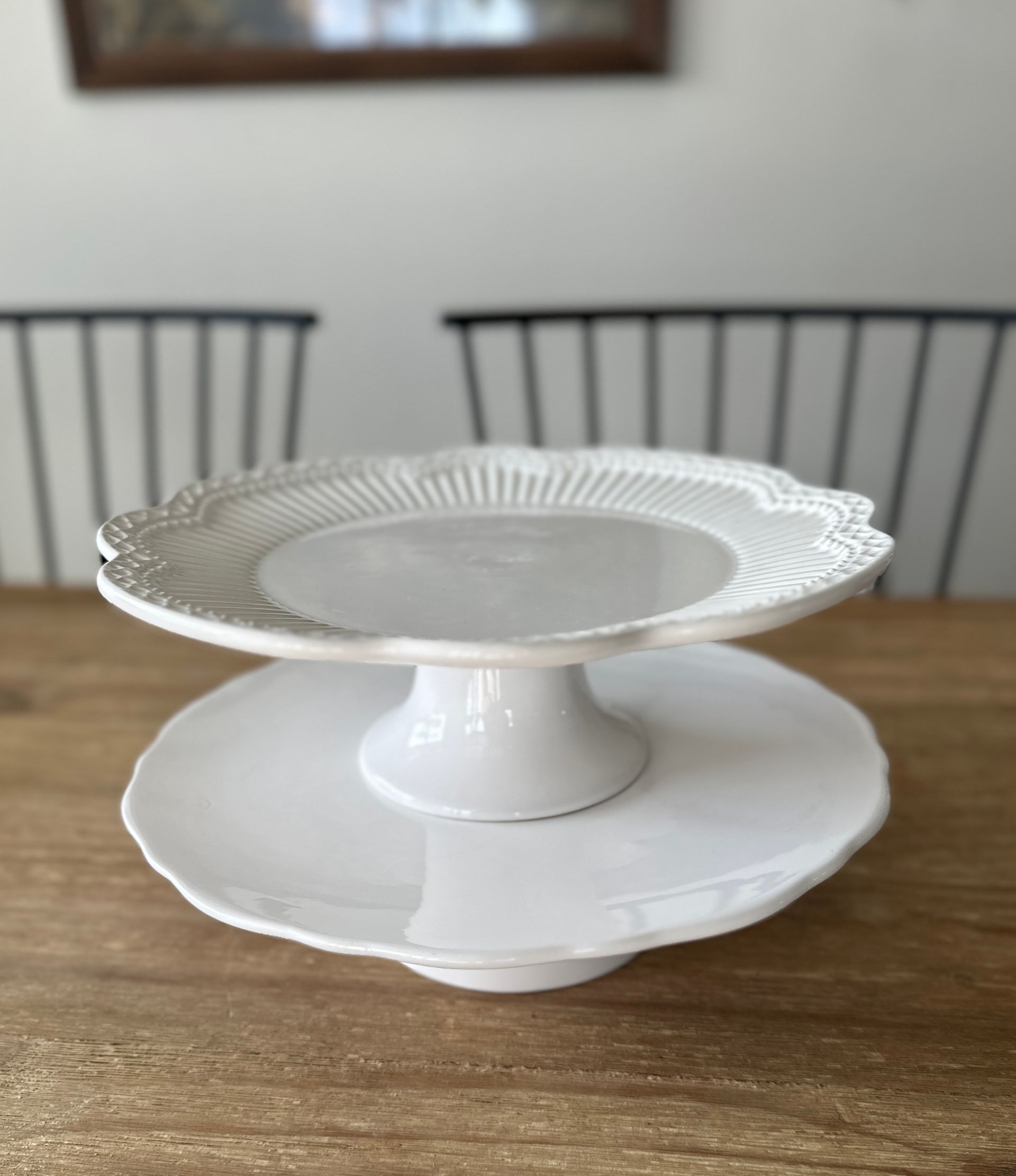 Cake stands aren't just for cakes! They can also stack desserts, elevate candles & florals as part of your centerpiece, even offer a beautiful unique addition to a charcuterie table for varying elements of height!