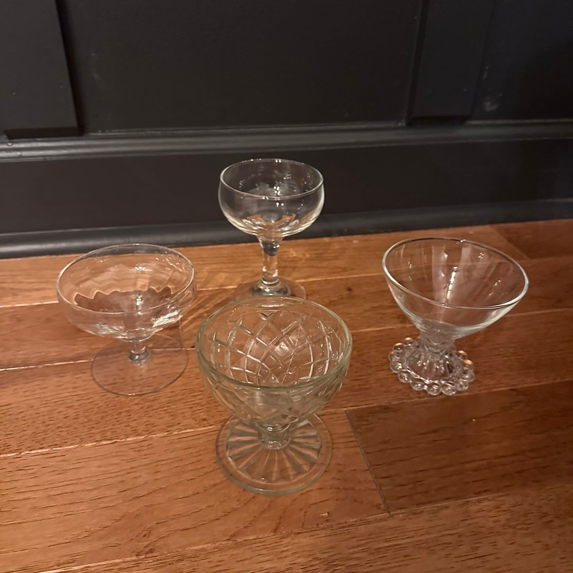 Long before champagne flutes arrived starlets and dignitaries alike enjoyed their bubbly from beautiful champagne coupes. Choose from clear, amber, green and pink vintage coupes ~ or mix-match!