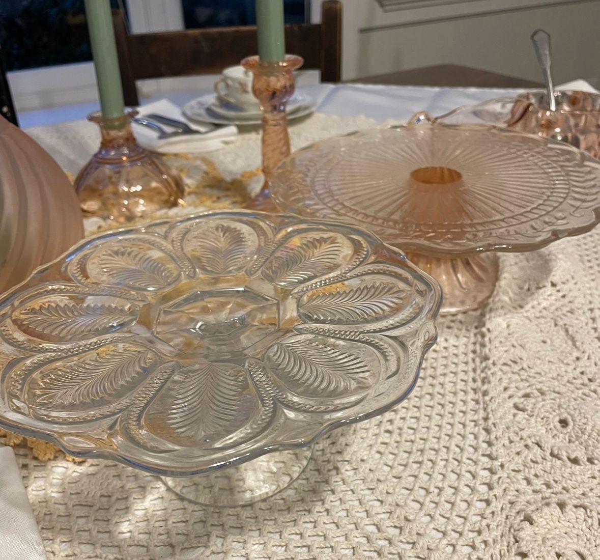 Beautiful mid-century pink cake stands from my aunt's personal collection
