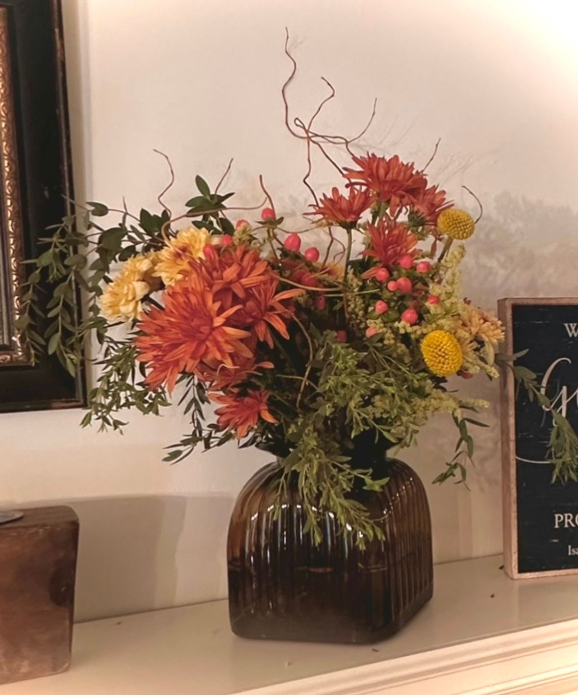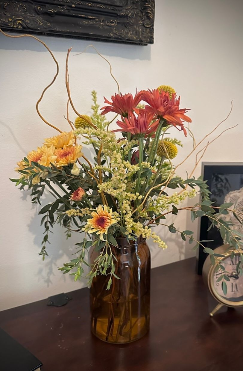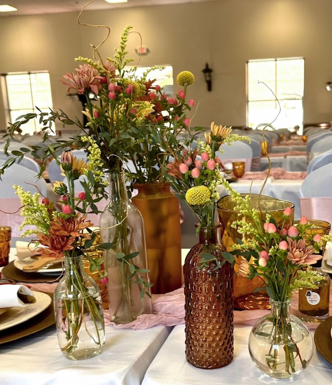 Collection of various sized & shaped amber vases, especially beautiful for your fall event